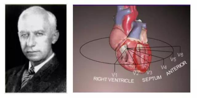 1913年,提出著名的“Einthoven三角”理論,同年創(chuàng)立心電圖標(biāo)準(zhǔn)雙極肢體導(dǎo)聯(lián)記錄系統(tǒng)。